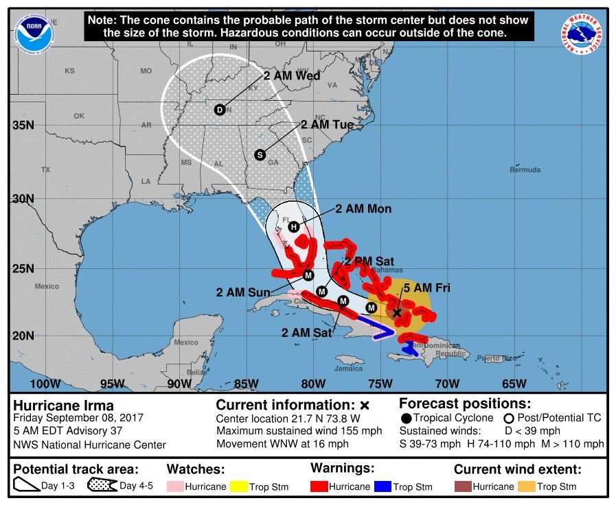 “Hurricane Irma could potentially hit Florida as a Category 5 hurricane.”