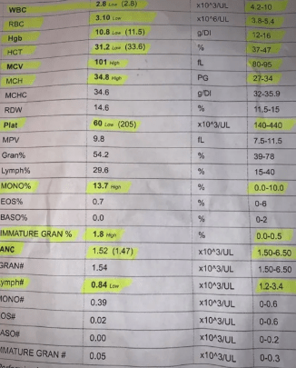 Pancytopenia, for anyone fortunate enough not to know, is when your blood counts tank across the board. I think of it as when your immune system files for divorce and leaves you with the bills.